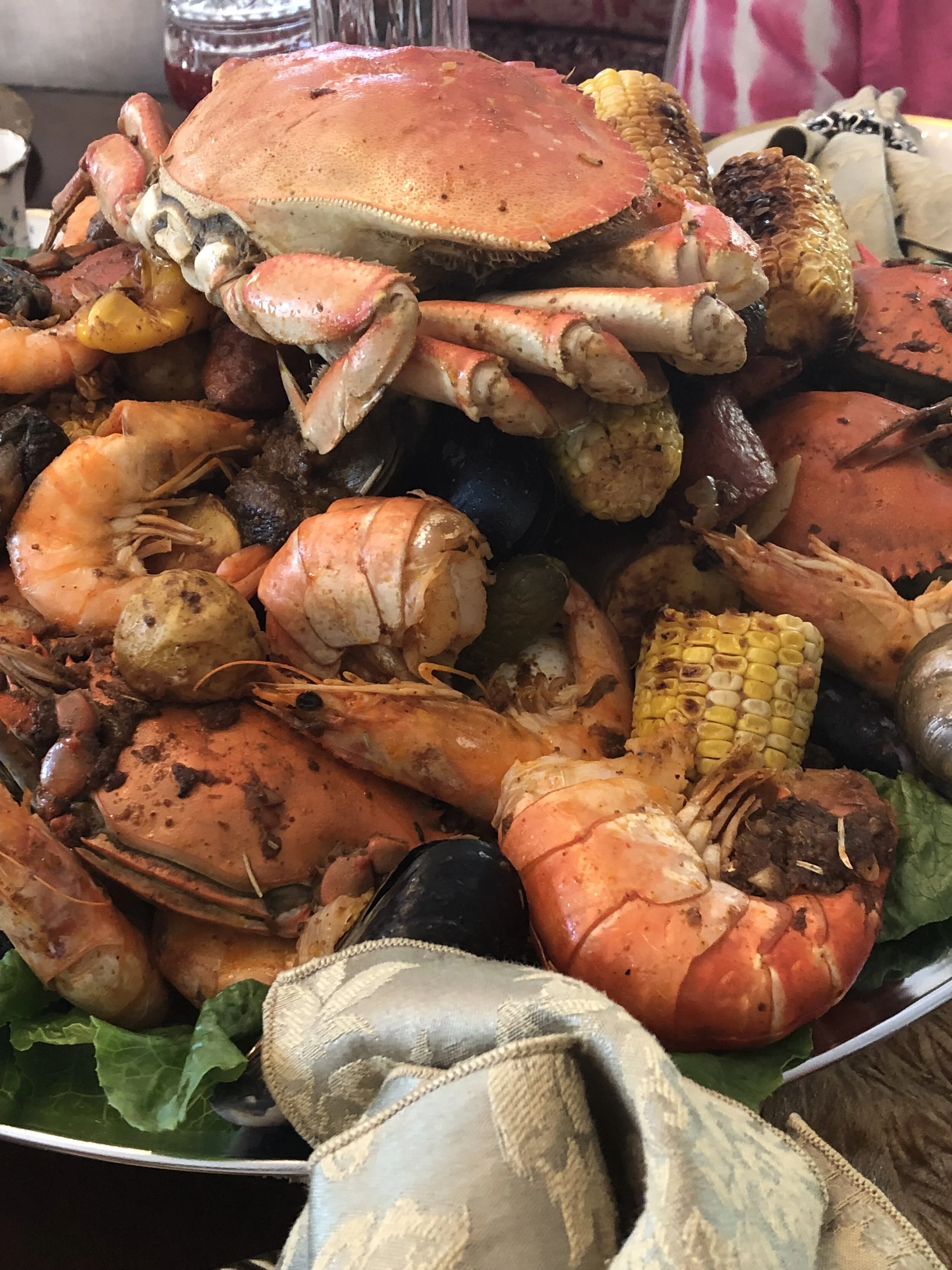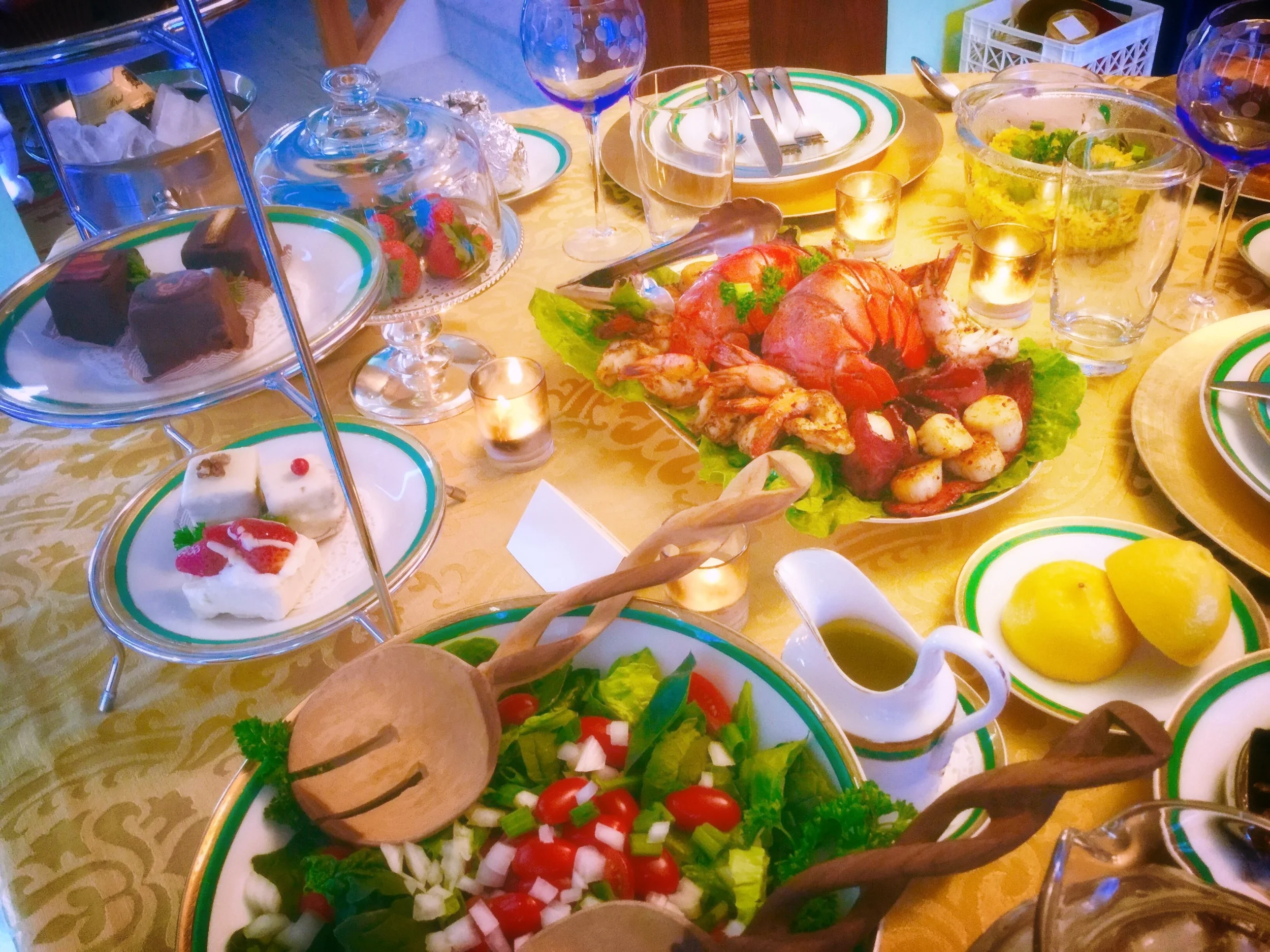 This weekend we celebrated my husband's birthday. Every day there was an activity beginning Friday night, so I'm exhausted. But, I have to share our Saturday evening. My husband is a seafood maniac [lobster, shrimp & scallops on the menu]. My good girlfriend