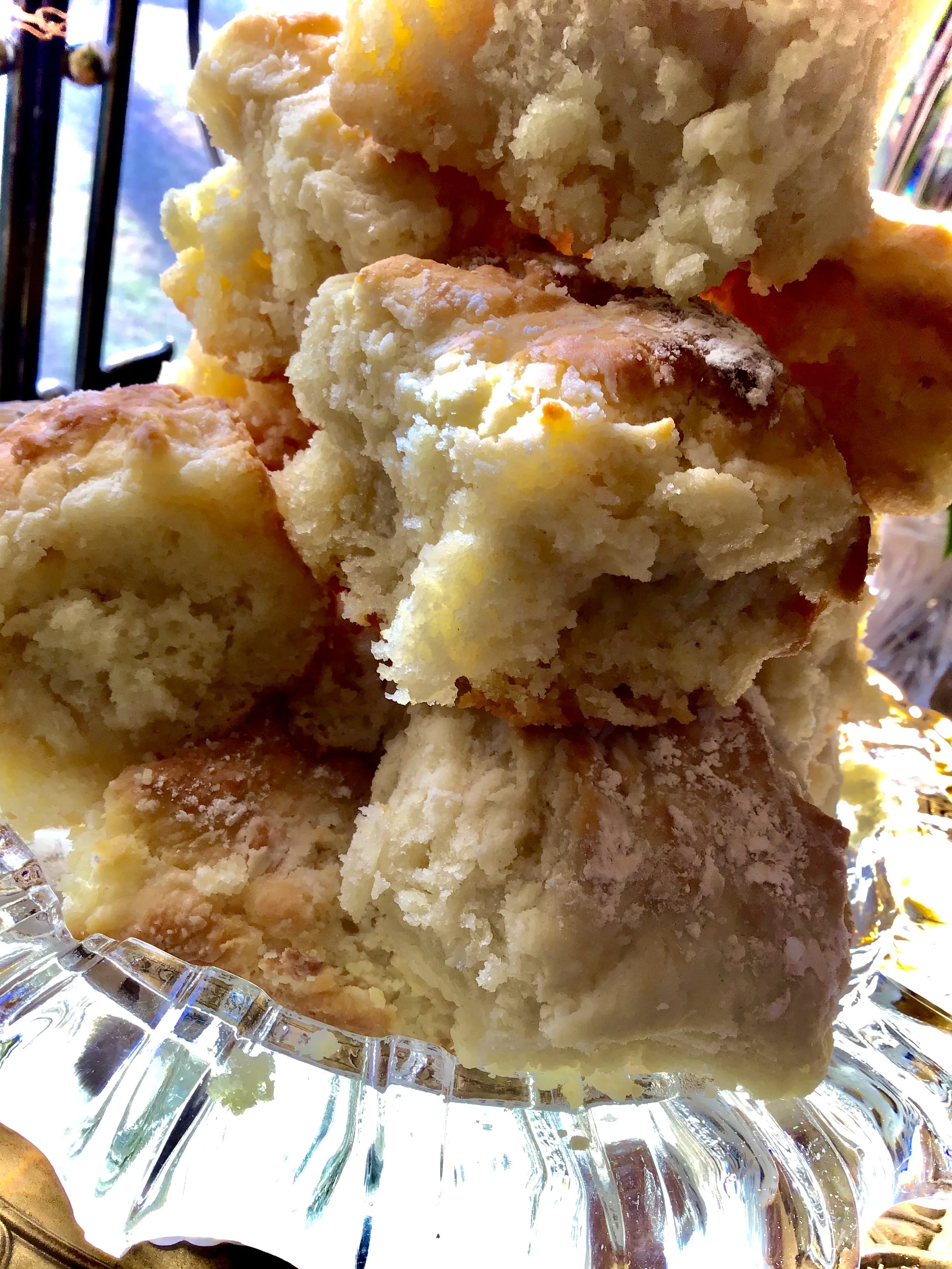 Arriving late to brunch, a guest rushes in at the very end; so, I heat up a plate of what's left and serve. When suddenly she yells out, Wait, wait, is anybody standing behind me? [checking around her] Because these biscuits are sooooo good, umma bout to slap somebody! The table erupts in laughter; hence, the name, Mariby Corpening's Buttermilk “Slap” Biscuits. —Guest