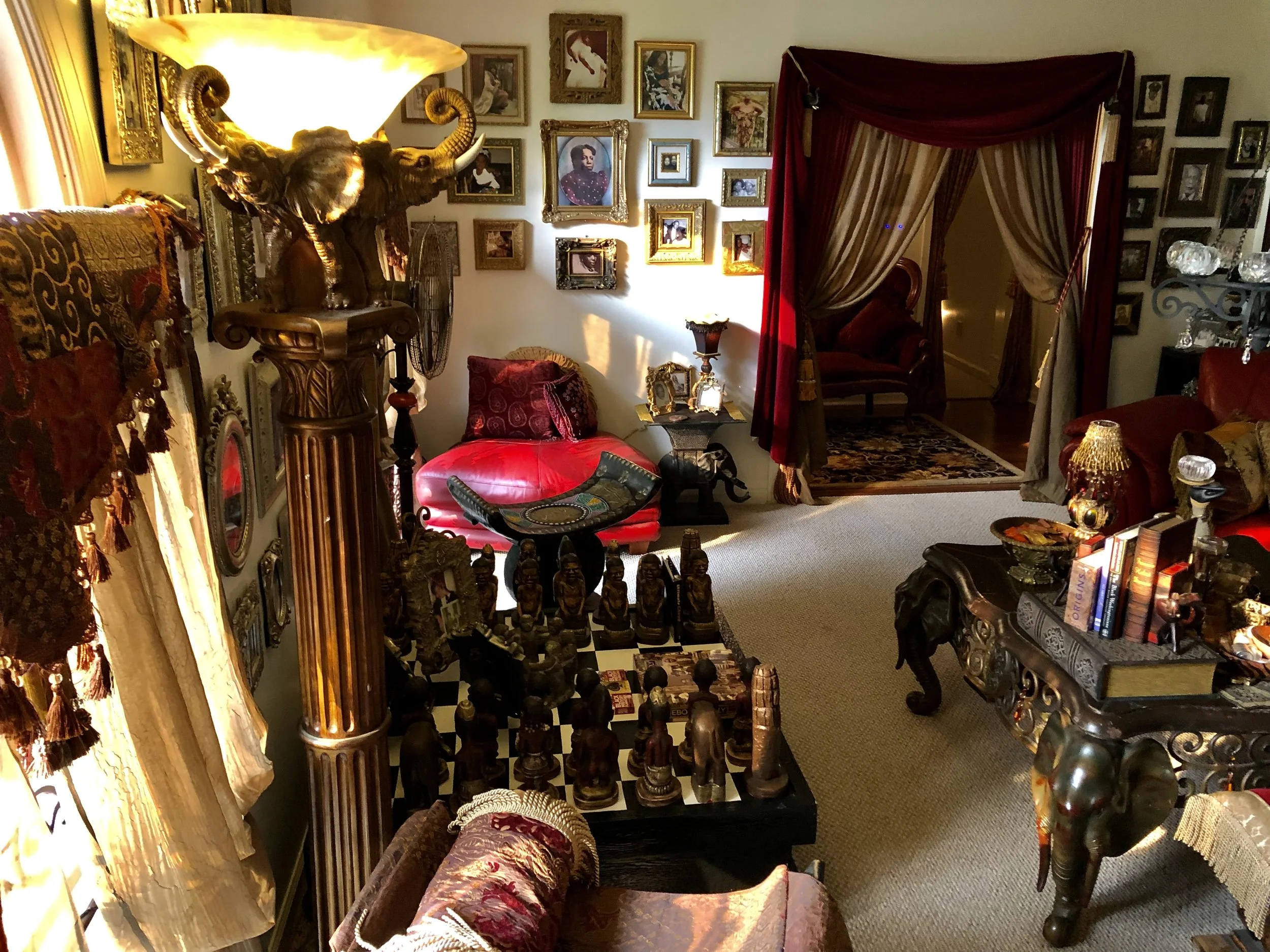 When you first enter the house, you are surrounded by rich colors of reds, golds and browns. Family photos all throughout each room, rooted in deep history. Soulful and relaxing music played in the background just adding to the vibe. A library of books; each a poignant and enriching read. We stayed in Shirley's Room, lush with turquoise accents and vintage decor.