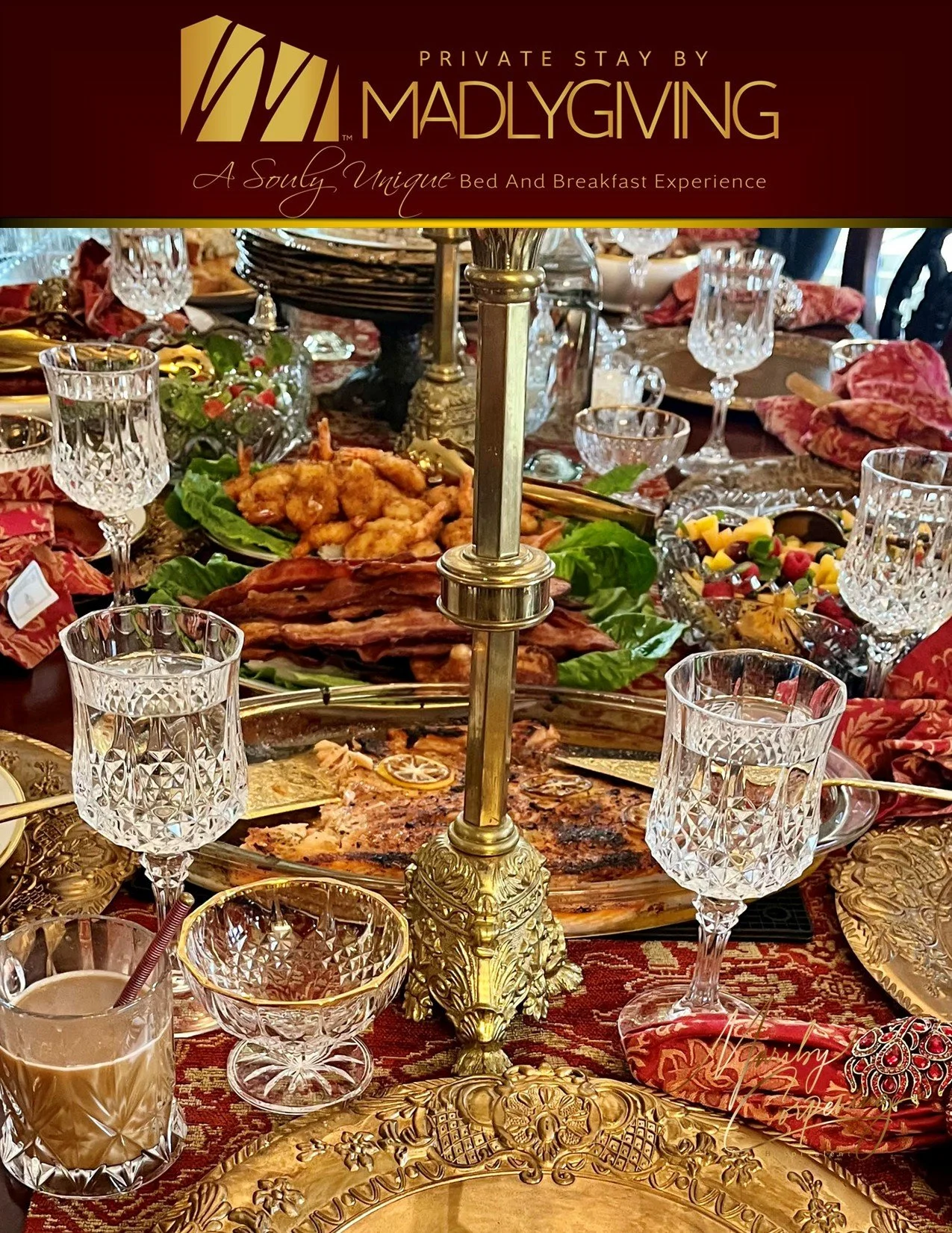 FOR AN ELEGANT AND MEMORABLE HOLIDAY PRIVATE DINING EXPERIENCE, HospiTalent Mariby Corpening Presents THE BEST BRUNCH EXPERIENCE EVER at Private Stay By MadlyGiving - A 5-Star Boutique Bed & Breakfast At National Harbor. Enjoy a Full Service Southern Sit-Down menu of all my guests’ brunch favorites and we won’t even mention THE SLAP BISCUITS—made from scratch and always served hot from the oven—OR An Especially-Planned Menu for whatever you have in mind! NOTE: Sit down service for up to 10 guests or Brunch Buffet for up to 50 guests.