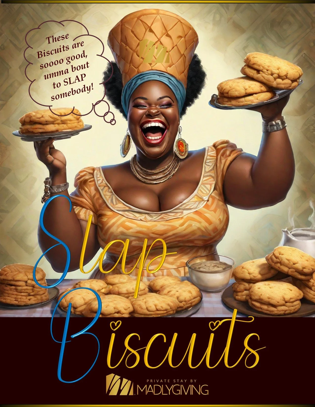 OH, THOSE SLAP BISCUITS served at Private Stay By MadlyGiving - Bed & Breakfast At National Harbor — Freshly made from scratch with a whole lotta love by HospiTalent Mariby Corpening, light, fluff, golden buttery-crisp edges, always served hot from the oven, slathered in softened butter and topped with Mariby’s homemade Strawberry Jam. “THINGS THAT MAKE YOU GO, OOOOOOOM!”