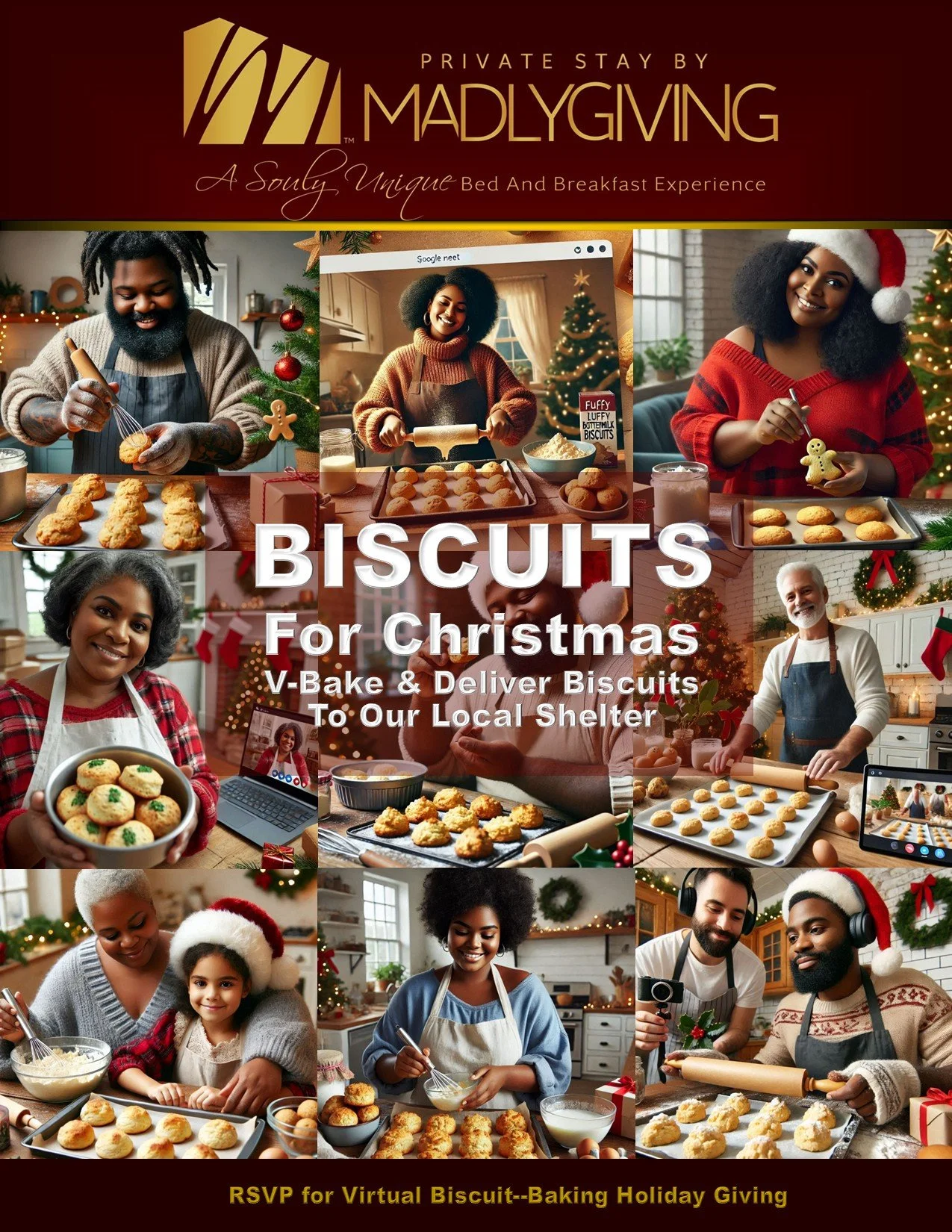 BISCUITS FOR CHRISTMAS—Baking For Good! Virtual Biscuit-Baking for Our Local Shelter on Christmas Eve—TOMORROW, Tuesday, December 24, 2024, 11:00am-12:00pm—Hosted By HospiTalent Mariby Corpening